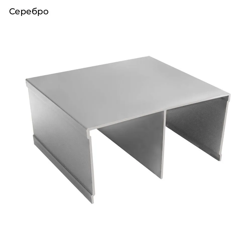 Верхняя направляющая для установки раздвижных дверей в две линии. Крепится к потолку саморезами. Используются верхние ролики 39 мм. Паз на лицевой стороне может декорироваться мебельной кромочной лентой шириной 30 мм.