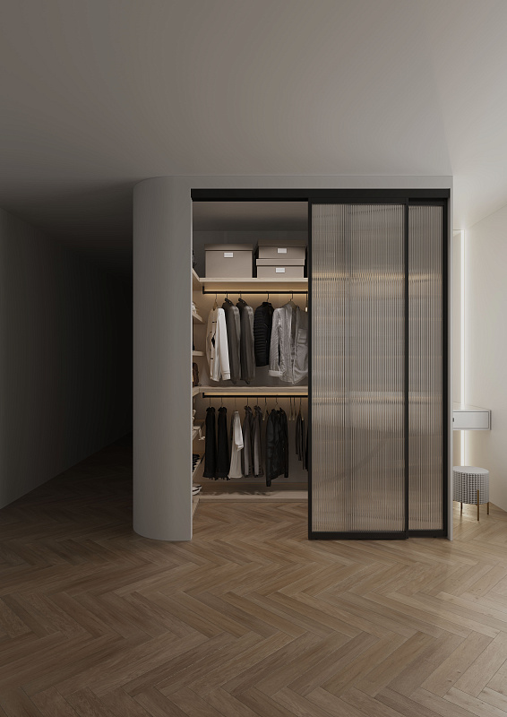 Распашные двери-купе используют для узких проемов шириной менее 800 мм. Система отлично подойдет для изготовления шкафа-пенала в едином стиле с раздвижными дверями-купе.